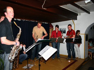 🔵 Eric Chavet (Baritonsax), Sandra Weling (Altsax), Ben Schumacher (Altsax), Luc Marly (Sopransax), Thibault Colienne (Tenorsax) und Luc Brammertz (Tenorsax)